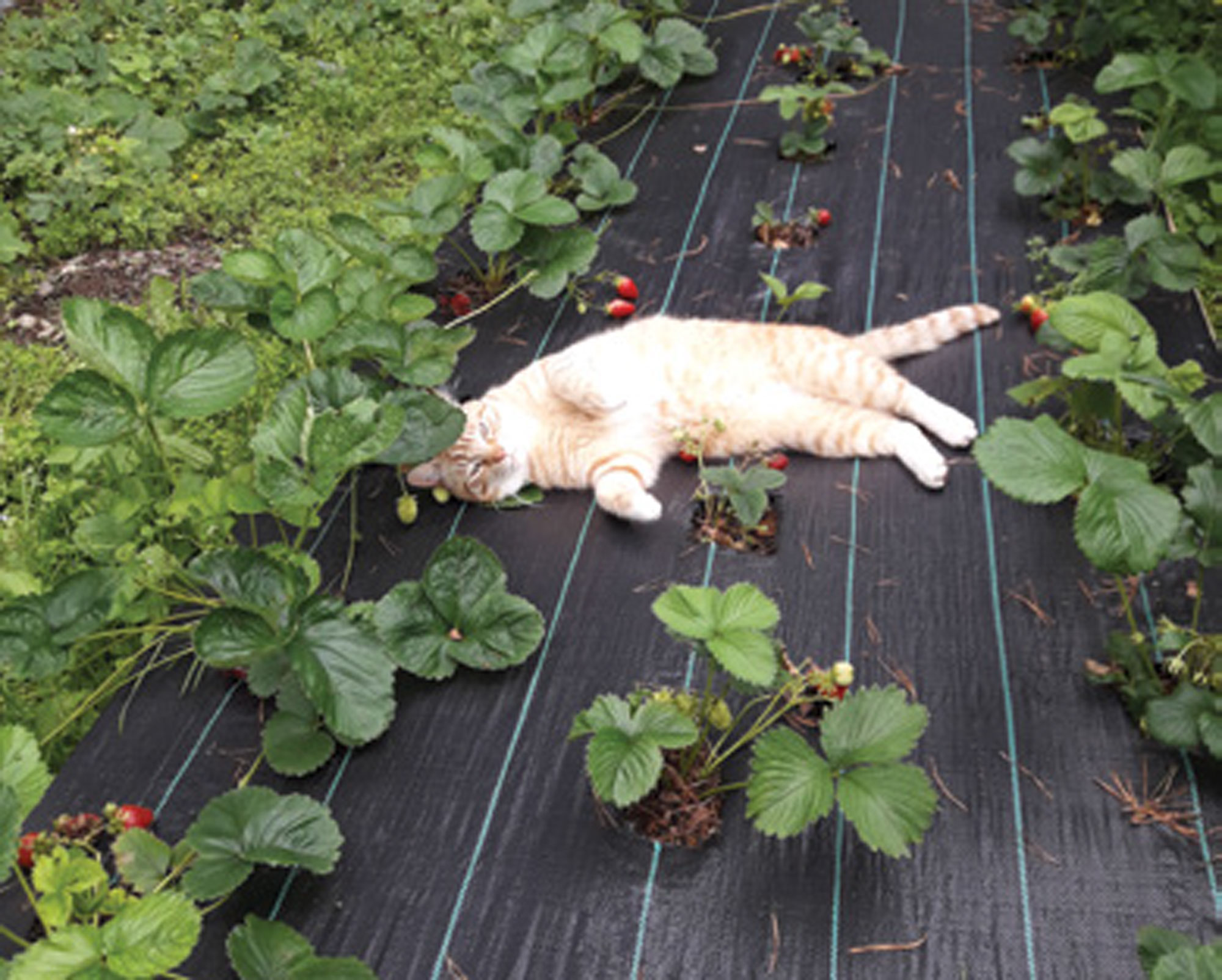 Dārza uzraugs, lai vāveres neapēstu zemenes.