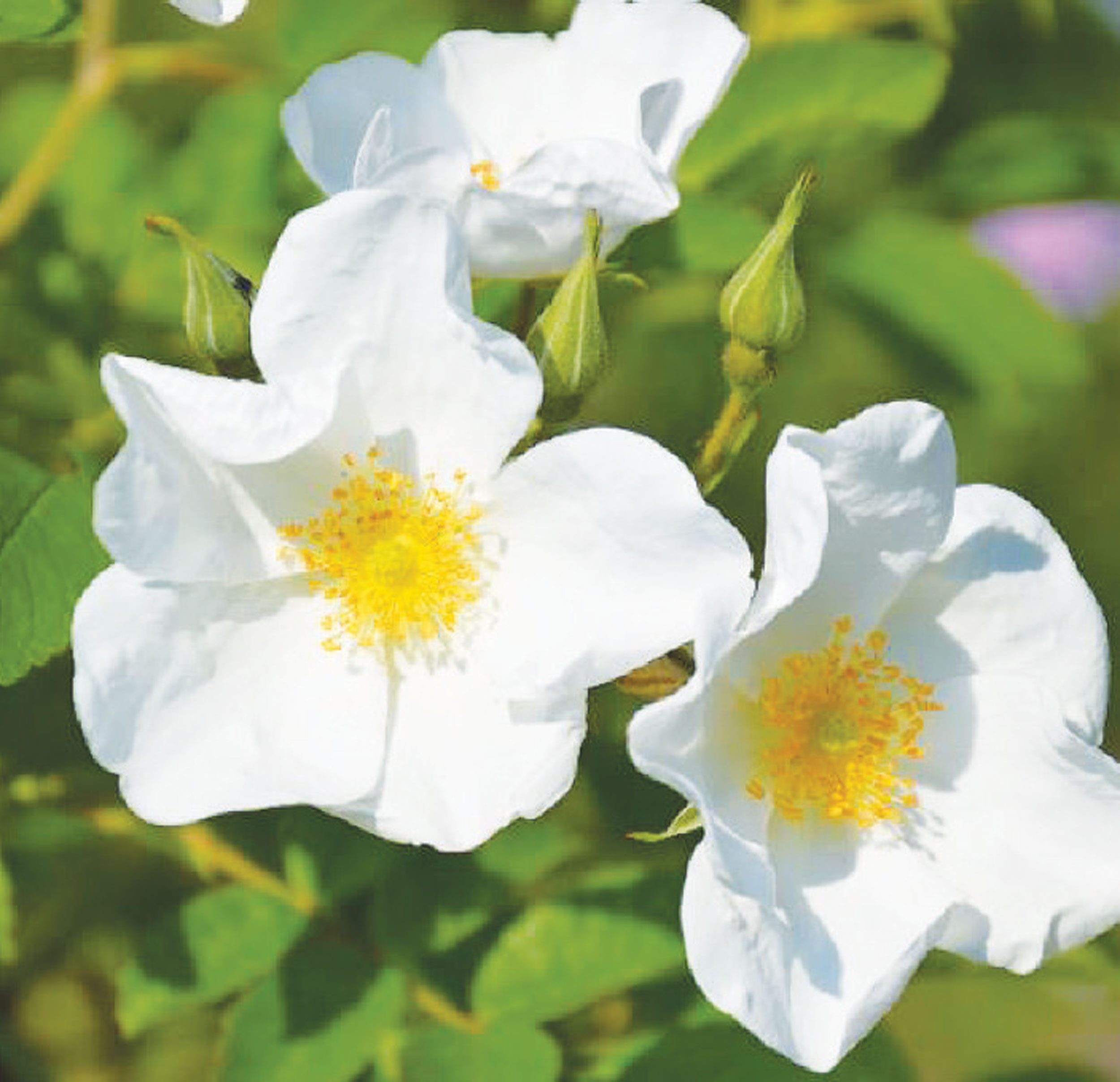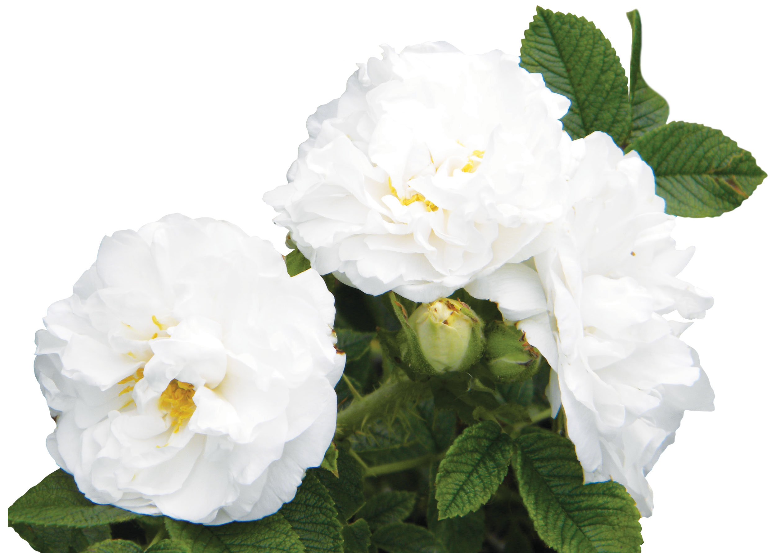 ‘Lelde’. Selekcionēta Nacionālajā botāniskajā dārzā no šķirnes ‘Sniedze’ brīvapputes sējeņiem, autore – Dzidra Rieksta. Reģistrēta 2010. gadā. Krūms plaši izplests, 0,8–1,2 m augsts, kompakts, ar sazarotiem, ērkšķainiem zariem. Lapas nelielas, spīdīgas, ādainas, krokotas, tumši zaļas. Ziedi balti, pildīti (30–40 vainaglapas), vidēji lieli, smaržīgi, 3–7 ziedkopā. Ziedpumpuri plati ovāli, plaukst viegli, un noziedējušie ziedi viegli nobirst. Zied ļoti bagātīgi un gandrīz nepārtraukti no jūnija līdz salnām. Ziemcietīga, Latvijā pārziemo bez piesegšanas.