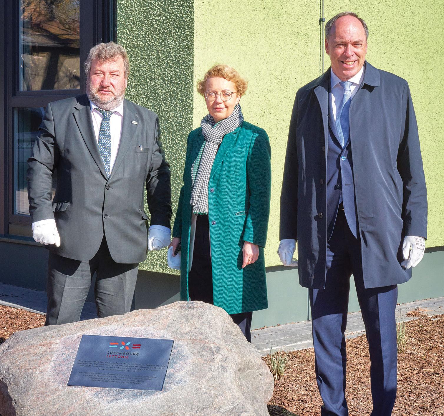 Luksemburgas Lielhercogistes vēstnieks Latvijā un Lietuvā Pauls Šmits, Luksemburgas Lielhercogistes goda konsule Kristiāna Libāne-Šķēle un Dabas aizsardzības pārvaldes ģenerāldirektors Andrejs Svilāns Nacionālajā botāniskajā dārzā pie Vides izglītības un informācijas centra Botania.