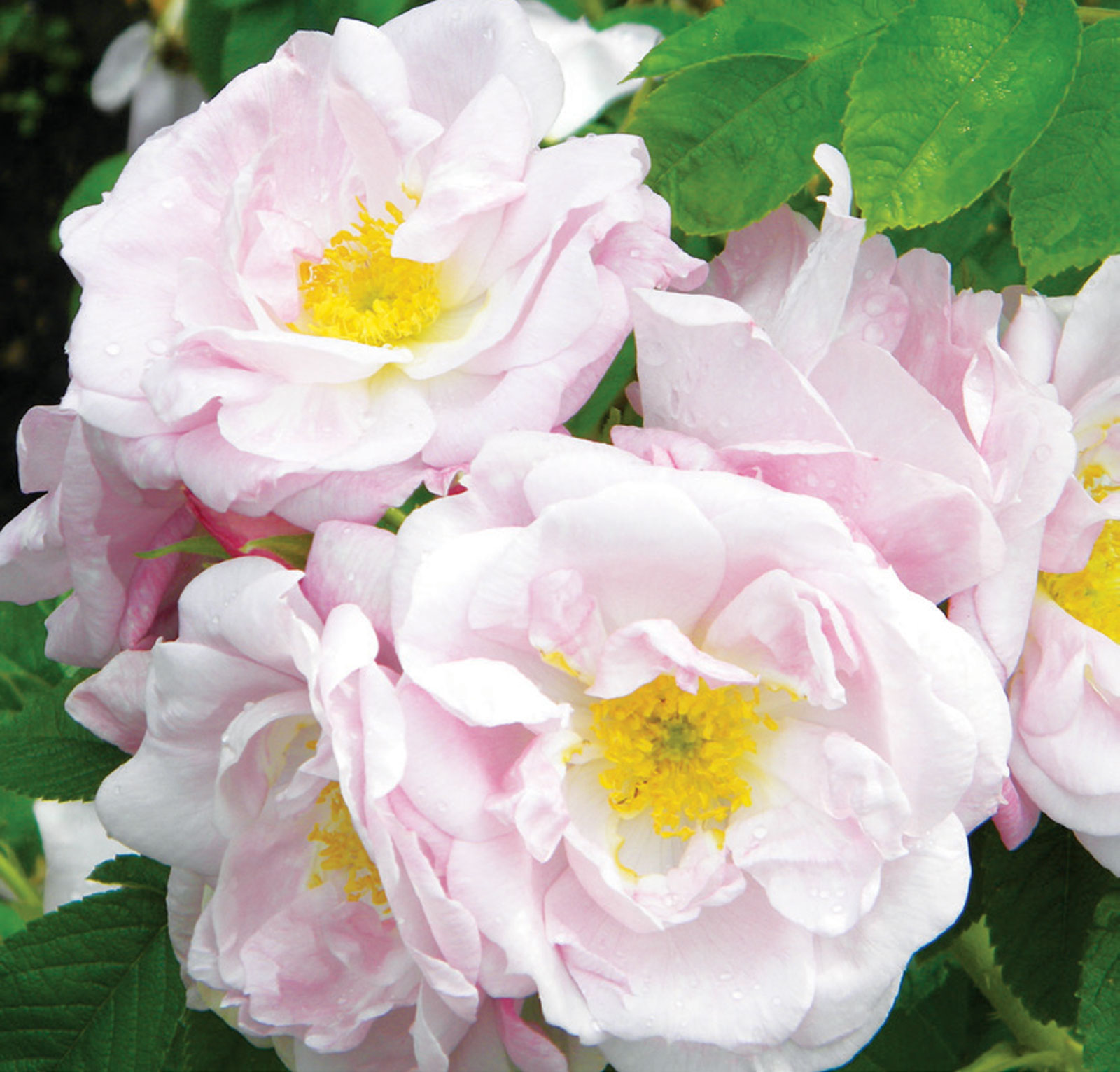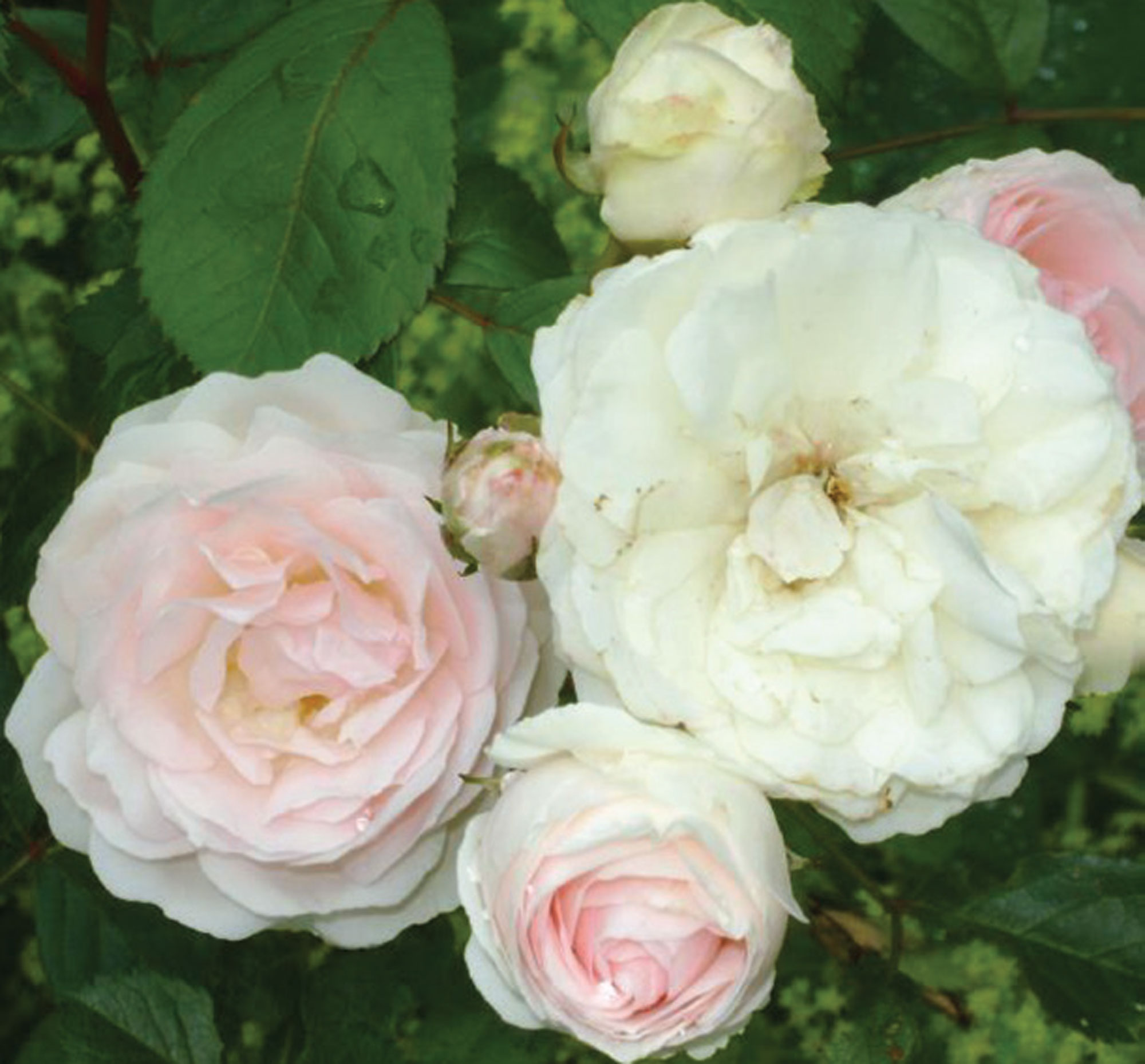 ‘Clotilde Soupert’ – poliantroze, izveidota 1889. gadā, krūma augstums 60 cm, platums 50 cm, ziedi lielos ķekaros, zied pakāpeniski visā sezonas garumā.