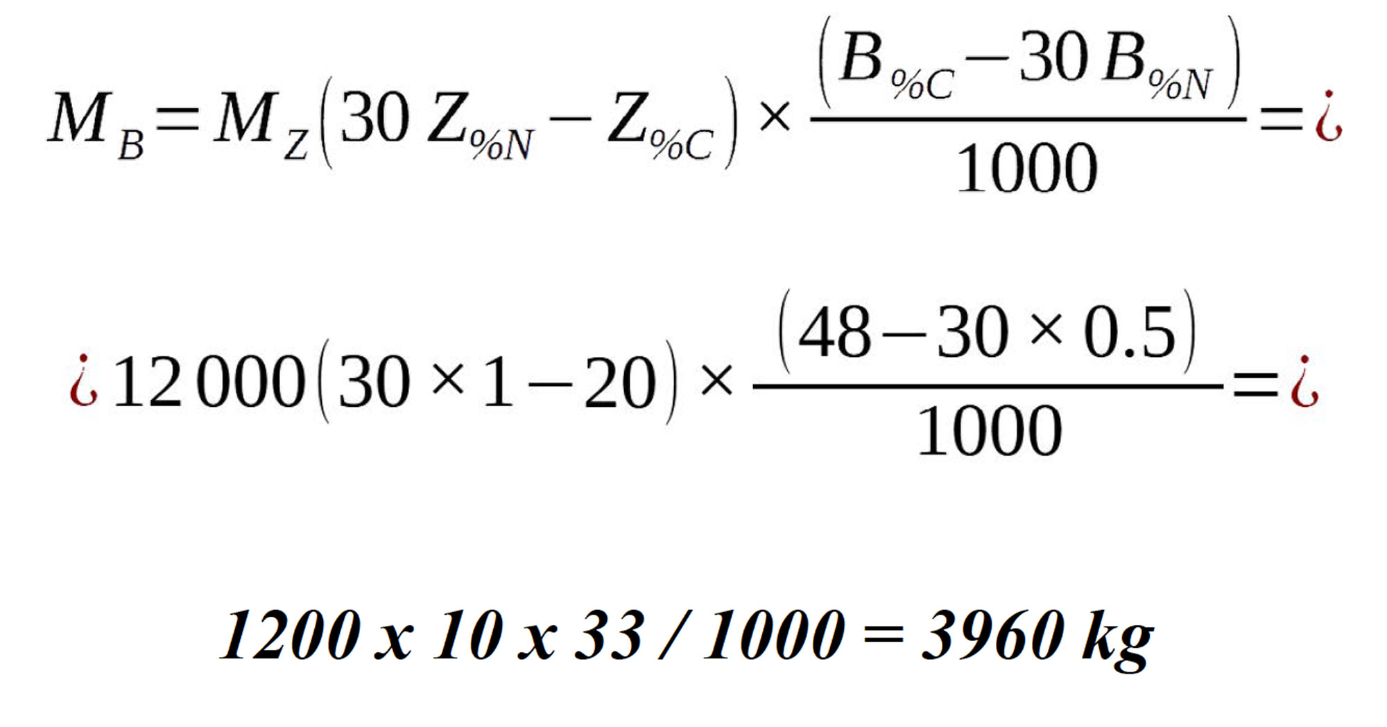 MB = nepieciešamā brūnā materiāla masa, (kg)