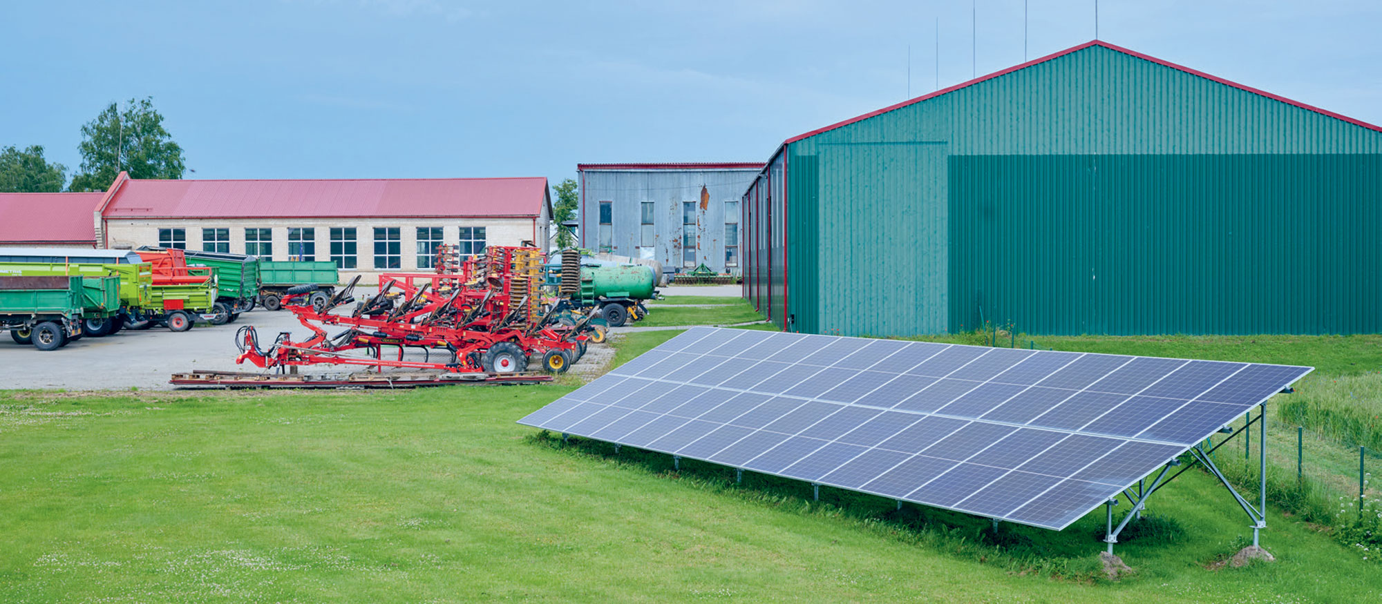 Saimniecības teritorija un uzstādītie saules paneļi.
