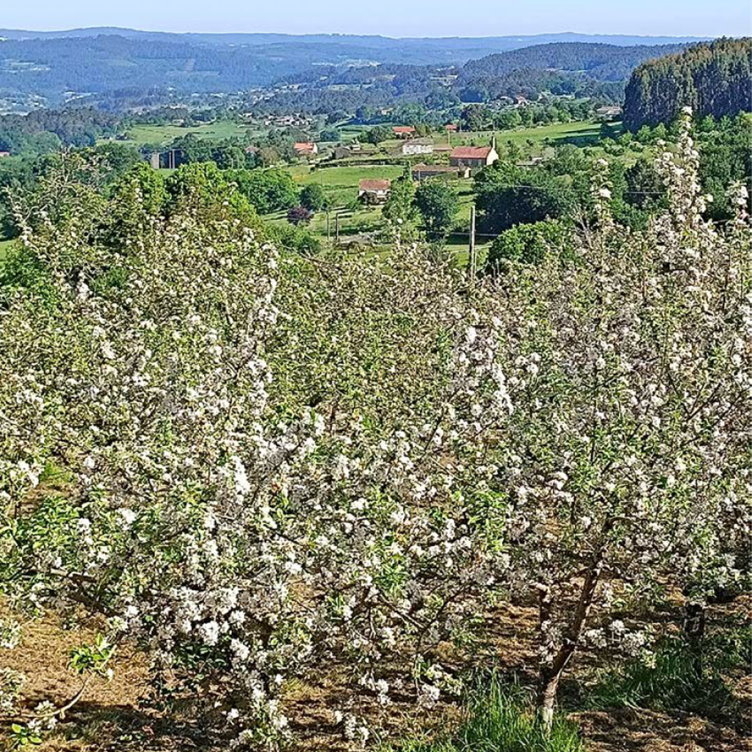 Starp bio un ne bio saimniecībām jābūt 10 m attālumam. Pirms 2000 gadiem te bijušas ķeltu komūnas, par ko liecina palikušie mūri. Daļa zemju viņi nomā, tas ir sarežģīti, jo gribētu iestādīt augļu kokus, bet tā nav viņu zeme. Ir sapnis arī iestādīt lazdas. Viņiem ir 400 augļu koki, dažādas ābeles un bumbieri, ražu var saglabāt līdz aprīlim. Augļu koki ir raksturīgi Galīsijas reģionam. Blakus saimniecībai aug eikaliptu mežs, kas rada ugunsbīstamību karstajā periodā.
