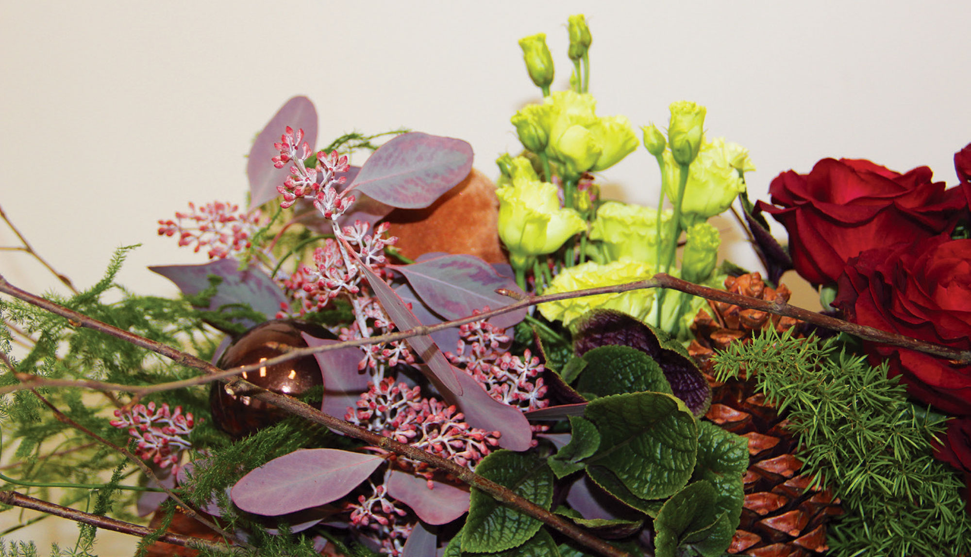 Ikdienā izvēlamies visdažādākos ziedus, vairāk pievēršot uzmanību savu mīļāko augu krāsai, formai un smaržai, savukārt Ziemassvētkos ierastāki tradicionālie augu salikumi ar vispāratzītu krāsu simboliku – zaļu baltegli vai akmensozolu, sarkanas vai baltas puansetijas. Taču dažkārt pietiek tikai ar mazu akcentu pie ikdienā lietotiem materiāliem, lai mainītu floristikas izstrādājuma tematiku.