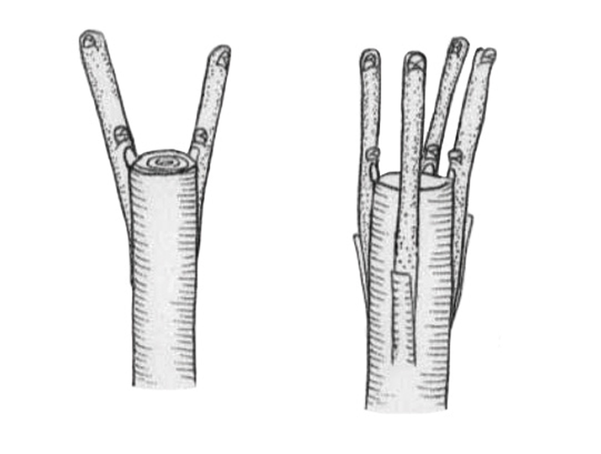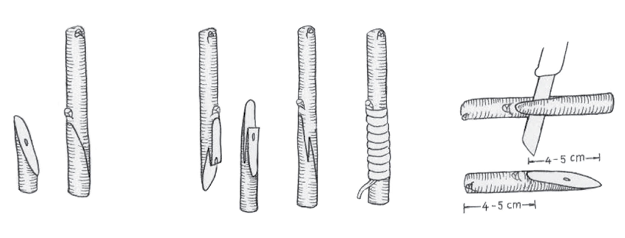 Ievietojot potzaru aiz potcelma mizas, virs potcelma atstāj nelielu pusmēnesi no potzara griezuma (3. attēls). Pārpotējot kokus dārzā, resnākiem zariem var likt divas un vairāk potes.