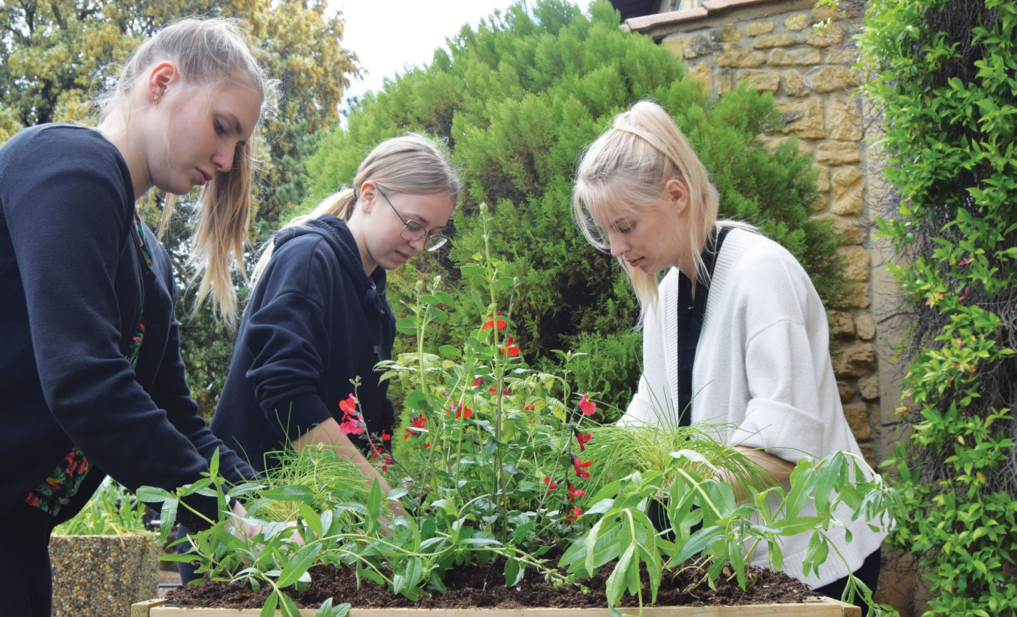 Bulduru Dārzkopības vidusskolas audzēknes praktiskajā nodarbībā Karpentras skolā.