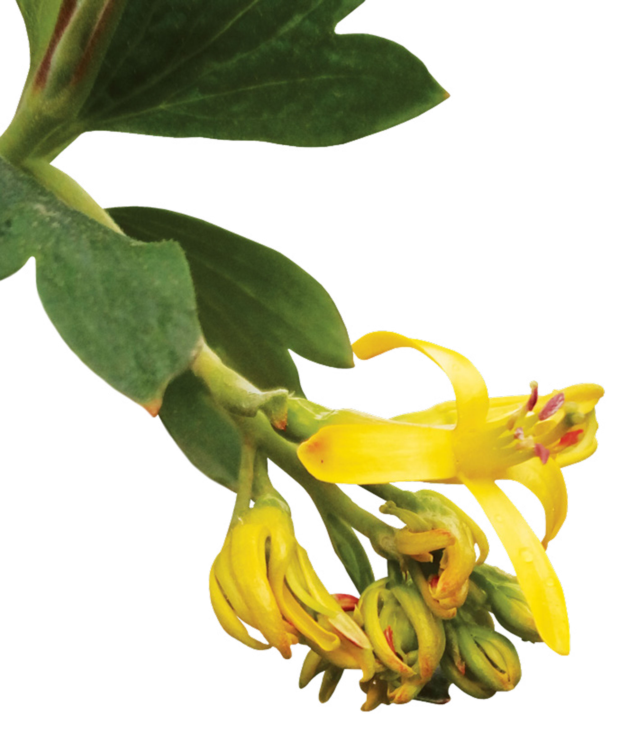 Pavasarī zelta jāņogas bagātīgi zied ar dzeltenu, līdz 2,5 cm garu ziedu ķekariem un izdala patīkamu smaržu. Plaši izplatītas kā dekoratīvs augs, jo rudenī to lapas intensīvi krāsojas dažādos toņos. Tomēr, lai arī zelta jāņogu ziedos izdalās salīdzinoši daudz nektāra un veidojas daudz putekšņu, ziedu īpatnējās, garās un šaurās cilindriskās formas dēļ bitēm ir grūti piekļūt nektāram un tās ziedus maz apmeklē, līdz ar to var būt apputeksnēšanās problēmas. Uzskata, ka efektīvāk ziedus apputeksnē kamenes (kas vāc galvenokārt ziedputekšņus). Tomēr arī mūsu stādījumā novērots, ka pat kamenes tā vietā, lai censtos iegūt nektāru parastā veidā, izgrauž caurumiņus zieda pamatnē, tā nolaupot nektāru pašas un nodrošinot tādu iespēju arī citiem (piemēram, bitēm), un neveicot zieda apputeksnēšanu. Tomēr pētījumi ir atšķirīgi, domājams, ka dažos reģionos un noteiktos laika apstākļos zelta jāņogas spēj ražot tik daudz nektāra, ka ziedi piepildās ar to un arī bites to var iegūt, tātad veikt arī apputeksnēšanas darbu.