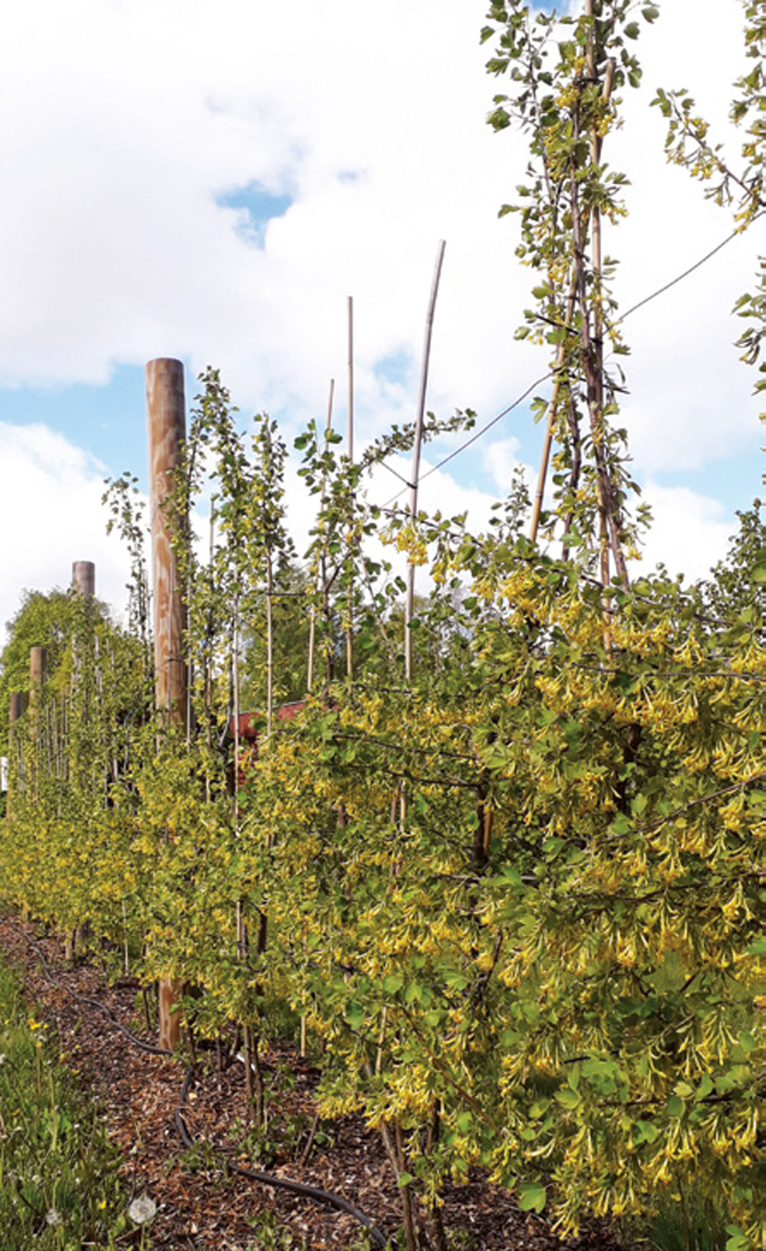 2 gadus vecs krūms, kas veidots špaleras sistēmā, uzsienot no katra krūma 3 zarus un pārējos izgriežot.